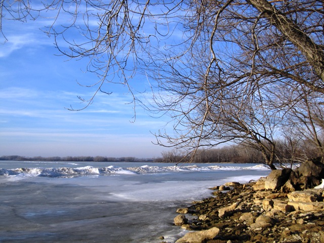 The Sunday afternoon drive turned adventurous when we decided to take a shortcut to Pilsen to investigate the church steeple we saw peeking over the horizon. We chose one of the many gravelled township roads to travel north. After about a half mile of gravel, we were confronted with an unmaintained road, which in winter – translated for non-Kansans – means mud over flint rock and limestone. No problem! We have 4-wheel drive. So, onward we charged. The silence in the truck grew tangible as we slid first into the ditch on the passenger side, crossed a small bridge, then slid across into the ditch on the driver side (which was feet from a creek), and back into the ditch on the passenger side as we climbed to the stop sign. When the “mudball” that we were now riding in came to a stop, Jon said, “Let’s not do that again!”